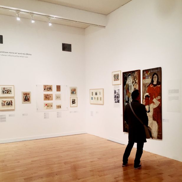 Περιδιαβαίνοντας την τόσο προσεγμένη έκθεση, άκουγα τη φωνή του ζωγράφου από μια μαγνητοσκοπημένη συνέντευξη του να συνοδεύει τους πίνακες και μαζί φωνές Γάλλων και Άγγλων και Ελλήνων, σκόρπιες μέσα στα πολλά τετραγωνικά της έκθεσης που ενδιαφέρθηκαν να αφιερώσουν λίγο από τον χρόνο τους. Είδα πρόσωπα που φωτίζονταν και παρατηρούσαν και συζητούσαν. Αυτό δεν το λέω προγονοπληξία, το λέω πέτρα στη λίμνη, που σε κάνει να σκεφτείς αν τα νερά σήμερα ταράζονται όσο θα ήθελες ή αν υπάρχει τρόπος να ταραχτούν που δε δοκίμασες. Αλλά κι αυτό είναι κομμάτι της πόλης κι όπως είπα παραπάνω, ο καθένας διαλέγει εισιτήρια.