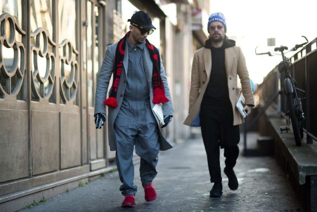 Bomber jackets και fingerless γάντια έκαναν αισθητή την παρουσία τους, ενώ στα πανωφόρια ξεχώρισαν τα Vetements καθώς και τα fur coats – ιδανικά και λόγω καιρού. Kυρίαρχη τάση τα oversized παρκά με κουκούλα και το leather σε κάθε του μορφή. Yohji Yamamoto sneakers σε συνδυασμό με tailored attire το επόμενο fashion statement – άνεση και style σε ένα look.