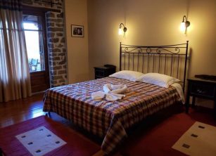 Η πέτρα και το ξύλο, υλικά της αρχιτεκτονικής παράδοσης του τόπου, δεσπόζουν παντού. Ζεστά χρώματα, έπιπλα ζωγραφισμένα στο χέρι, ποιοτικός εξοπλισμός, δημιουργούν ένα χώρο καλαίσθητο άνετο και φιλόξενο.