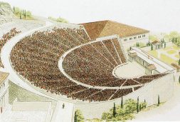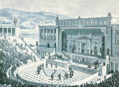 → Οι σωζόμενες τραγωδίες και κωμωδίες του 5ου και του 4ου π.Χ. αι. γράφτηκαν – τουλάχιστον οι περισσότερες – για να εκτελεστούν σε αυτόν τον χώρο. Στο θέατρο αυτό δίδαξαν τις τραγωδίες τους ο Αισχύλος, ο Σοφοκλής, ο Ευριπίδης και τις κωμωδίες του ο Αριστοφάνης.