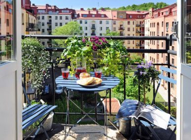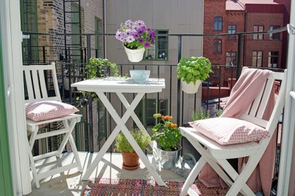 Αρωματικά φυτά, πολύχρωμα λουλούδια θα αλλάξουν την εικόνα – και θα μας προστατεύσουν από τα κουνούπια, που ακόμα υπάρχουν.. Μικρές ή μεγάλες μαξιλάρες, σε διάφορα χρώματα και υφάσματα, μικρά τραπεζάκια και διάφορες καρέκλες μπορούν να φτιάξουν ένα μικρο υπέροχο κόσμο.. Μην κοιτάξετε να κάνετε σετ, κάντε το χώρο πιο μοναδικό με διάφορα αντικείμενα. Πιο μοναδικά κομμάτια, θα κάνουν το μπαλκόνι μας πιο ιδιαίτερο.