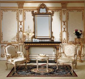 Το στυλ αυτό σε αντίθεση με το μοντέρνο, χαρακτηρίζεται από την πολυτέλεια, τη λάμψη, τα περίτεχνα σκαλίσματα και το μαξιμαλισμό. Χρησιμοποιεί έντονα έπιπλα και υπερβολικά διακοσμητικά στοιχεία. Συνήθως επικρατεί και η δραματική χρήση του φωτισμού. Ταπετσαρίες με έντονα μοτίβα, γυαλιστερές επιφάνειες, καθρέπτες, πολυτελείς πολυέλαιοι είναι μερικά από τα χαρακτηριστικά αυτού στυλ διακόσμησης.