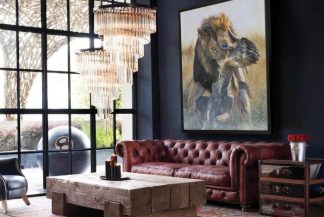 • Έχει χαρακτηριστεί ως ένας δερμάτινος καπιτονέ καναπές με πλάτη και μπράτσα στο ίδιο ύψος
