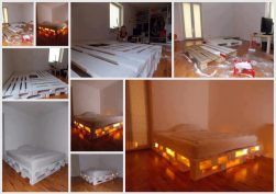 ⇒Καλό θα είναι να τις δώσετε να σας τις τρίψουν πρώτα – σε ειδικά μηχανήματα – γiα να αποφύγετε μικρά κομμάτια ξύλου, που μπορεί να σας τραυματίσουν στο μέλλον. Το τρίψιμο θα φέρει στην επιφάνεια το πραγματικό χρώμα του ξύλου που πολλές φορές, με ένα βερνίκι μπορεί να δώσει ένα ιδιαίτερα ζεστό αποτέλεσμα. Αν πάλι θέλετε να βάψετε τις παλέτες σε κάποιο χρώμα επιλογής σας μπορείτε να το κάνετε με ειδικό πιστόλι χρώματος ή καλό κουράγιο με το πινέλο.