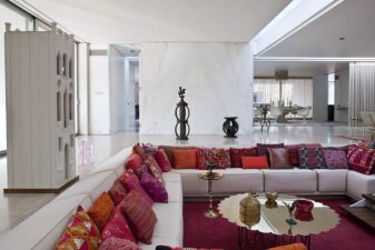 Στο εσωτερικό μια ενιαία διάταξη περιλαμβάνει το χαρακτηριστικό γνώρισμα του σπιτιού ένα βυθισμένο “λάκκο συνομιλίας”, όπου συναντάμε ελαφρά έπιπλα σε σχεδιασμό του Girard, η συνεργασία του οποίου με την οικογένεια κράτησε 15 χρόνια, δια μέσου της οποίας, δημιουργήθηκαν διαφορετικές υφές σε υφάσματα, ανάλογα με τις αλλαγές που θα επιθυμούσαν τα μέλη της.