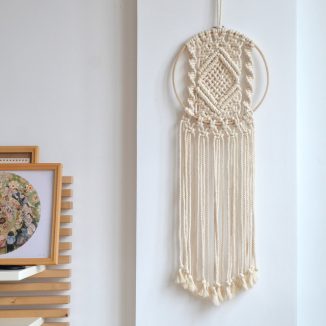 Το όνομα macrame είναι πιθανό να προέρχεται από το Αραβικό Migramah που σημαίνει κρόσσι, διακοσμητική φράντζα, χοντρή δαντέλα. Εσείς αυτό που έχετε να κάνετε – αν δεν αποφασίσετε να μάθετε την τέχνη του macrame – είναι να ψάξετε αυτό που σας ταιριάζει ή ακόμα και να βρείτε να σας φτιάξουν ένα όπως το θέλετε και να διακοσμήσετε το χώρο σας. Είναι αέρινο, είναι χειροποίητο, έχει αξία και ομορφιά.