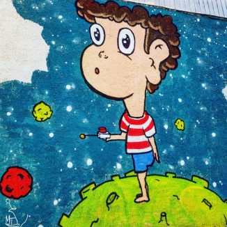 → Αυτό που κάνουμε εμείς είναι “street art”, τοιχογραφίες δρόμου, που απεικονίζουν πρόσωπα ζώα κλπ. Από την άλλη εμείς εργαζόμαστε με ανάθεση. Έχουμε διακοσμήσει σε διάφορα μέρη της Ελλάδας τοίχους κτιρίων, σπίτια, σχολεία ακόμα και μαγαζιά όπως ας πούμε επιμελήθηκα κομμάτι από τοίχο καφετέριας στην παραλία της Σύρου.